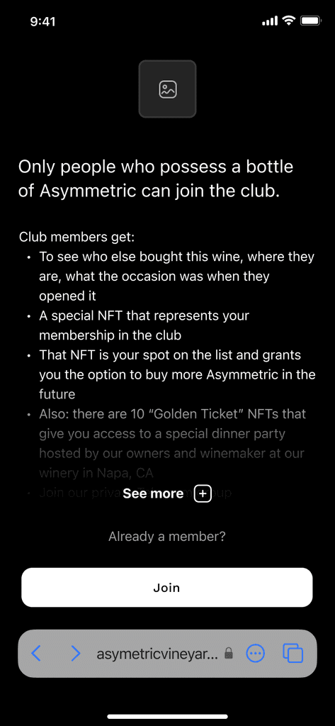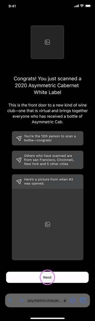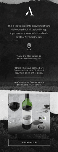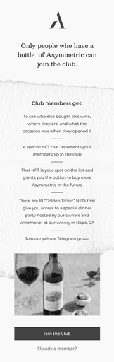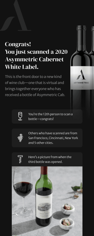 Asymmetric Vineyards grants front door access to a new kind of wine club—one that is virtual and brings together everyone who has received a bottle of Asymmetric Cab.