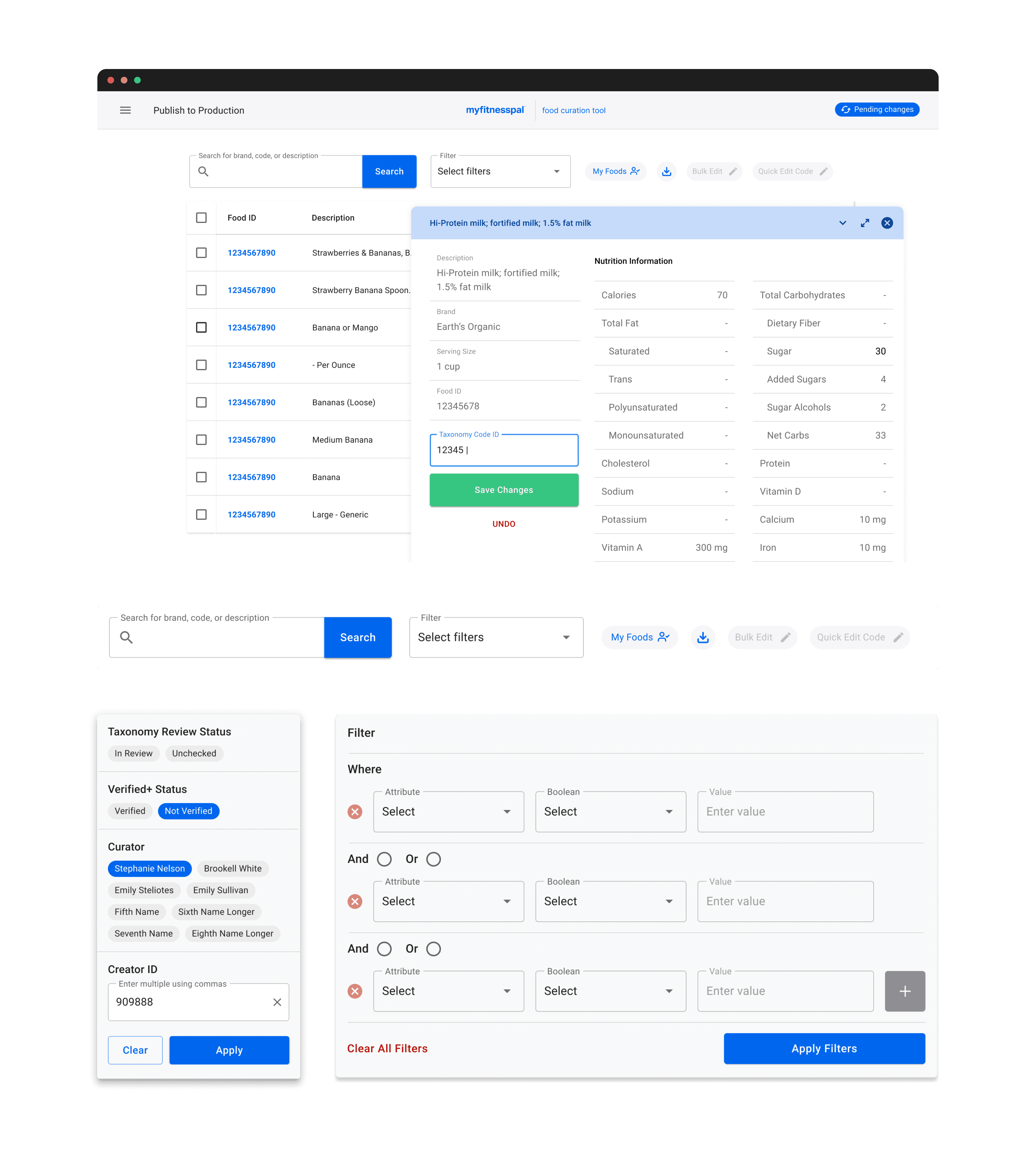 After synthesizing the information, I implemented improvements to Curator workflows with a single end-to-end system that allowed them to edit multiple foods at once