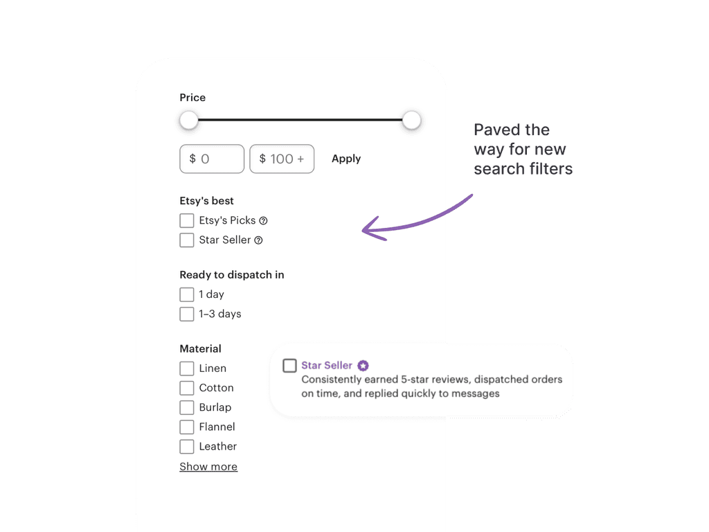 How I built trust with Etsy’s top sellers by introducing Star Seller signals: boosting buyer awareness by 36% and driving repeat business.